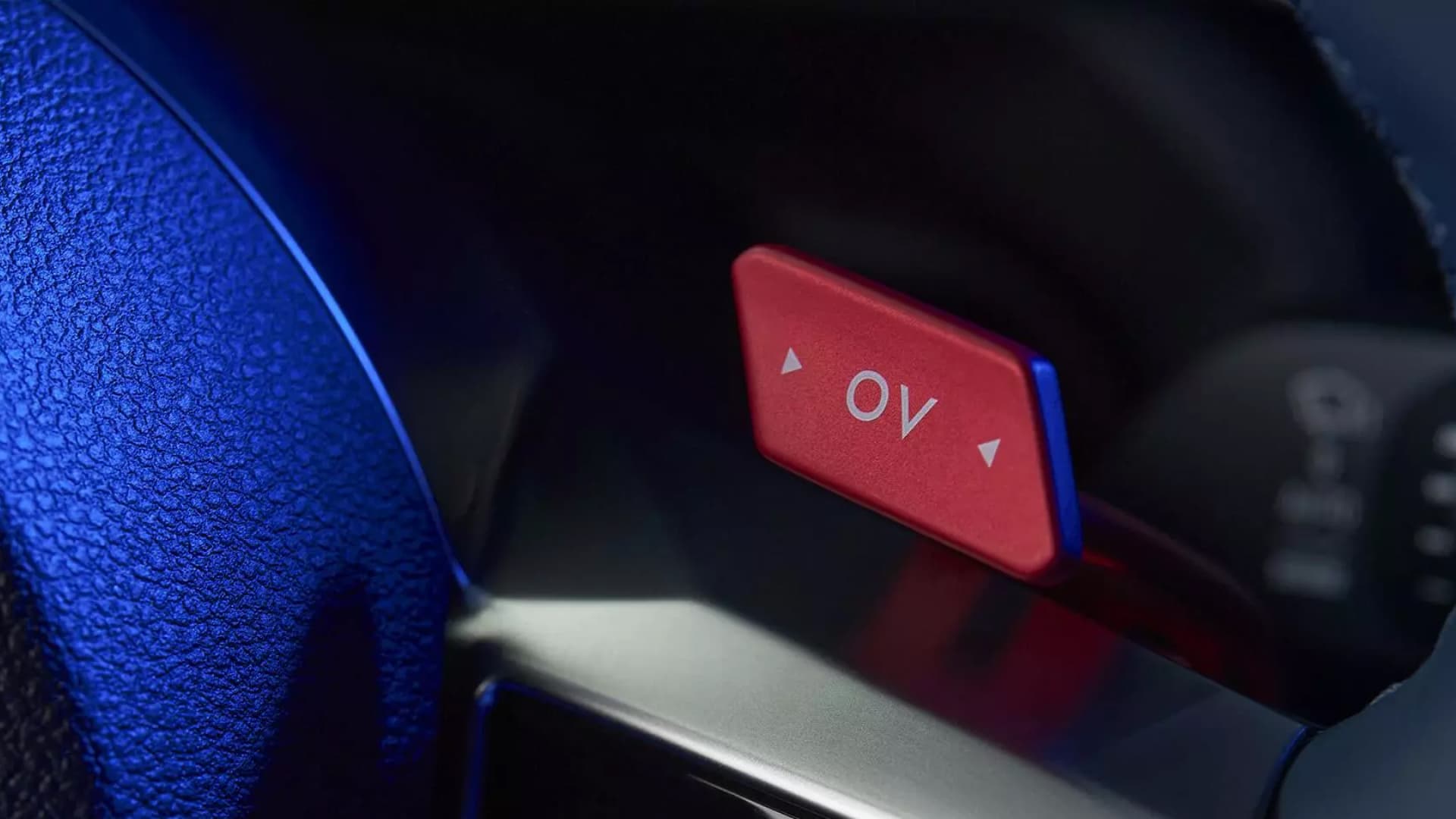 Lade- og forbikjøringsfunksjonene demonstrerer stolt potensialet til elektrisk kraft. Veksle mellom RCH og trykk på OV for å styre intensiteten av regenerativ bremsing og trykk på OV for maksimal kraft. One Pedal-funksjonen forbedrer energieffektiviteten.